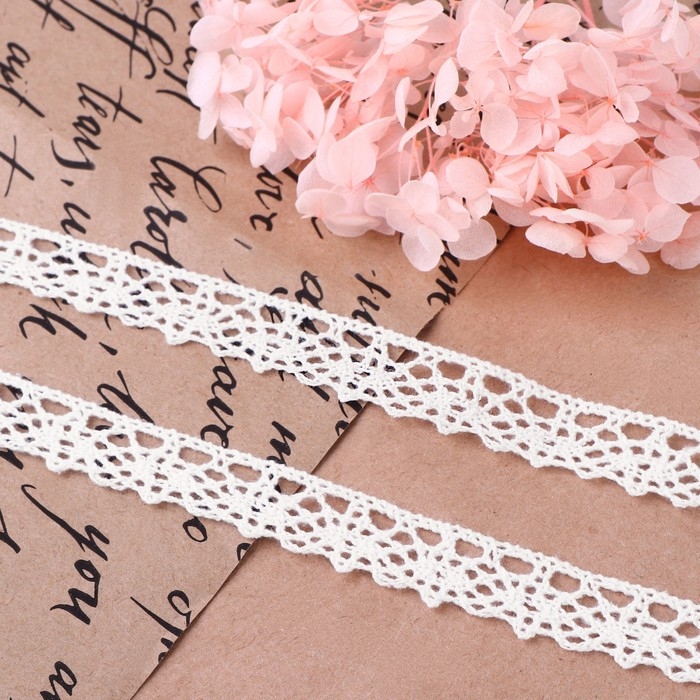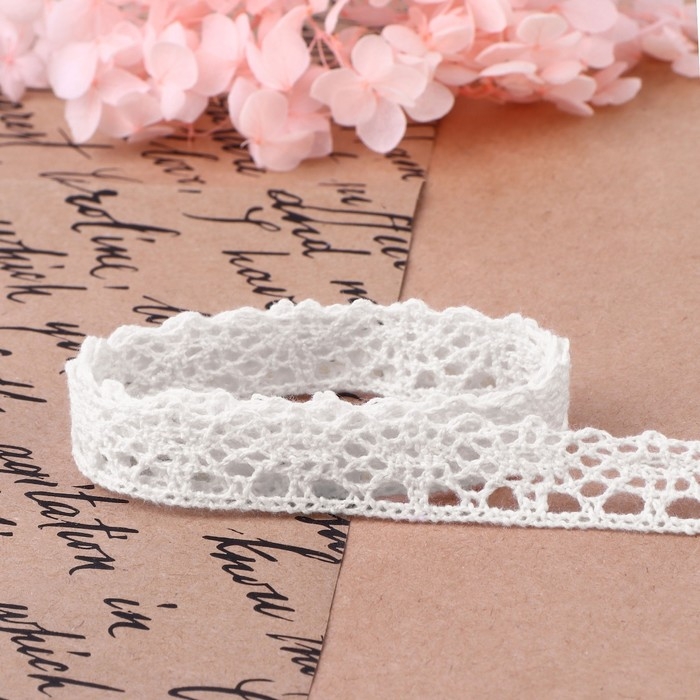 Кружево вязаное, 15 мм × 15 ± 1 м, цвет кипенно-белый