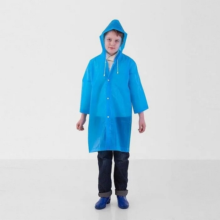Дождевик детский однотонный синий, рост 120-160 см