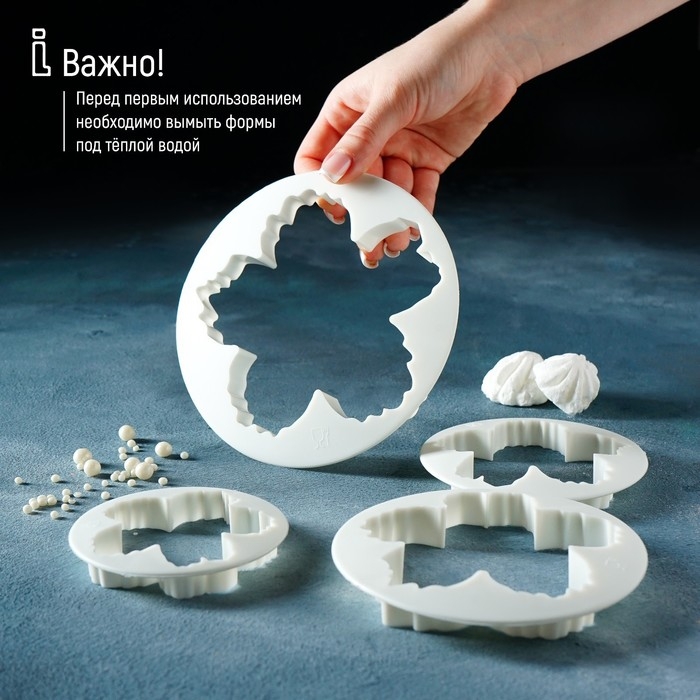Набор выемок кондитерских для марципана и теста Доляна «Пионы», 4 шт, d=8,5/10 /11,5/14,5 см