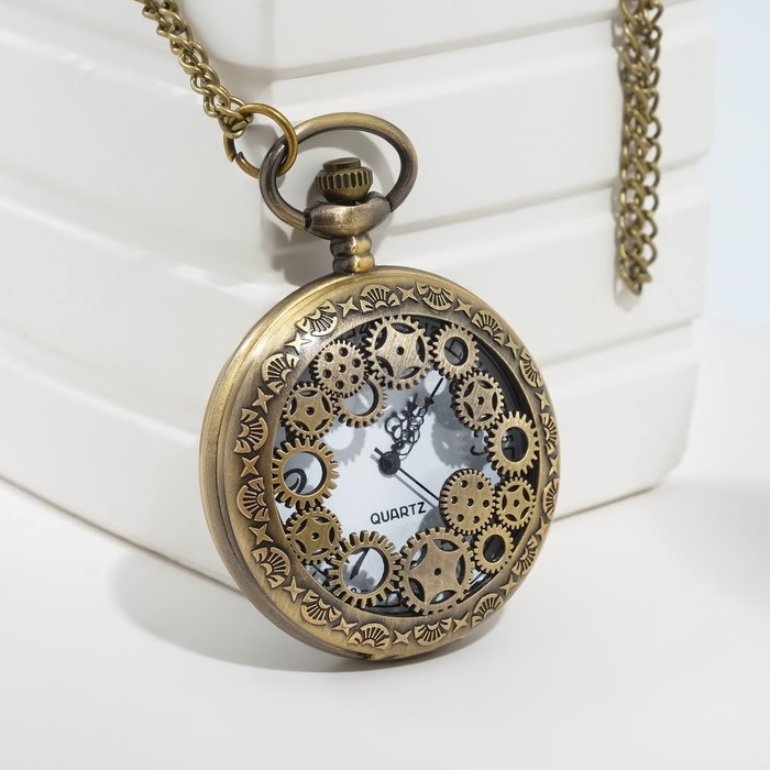 Часы карманные "Шестеренки", кварцевые, d циферблата-4 см, 5.5 х 4.5 см