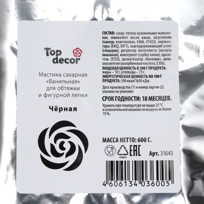Способ применения: Необходимое количество мастики предварительно размять на сухой, слегка подпыленной сахарной пудрой поверхности, до мягкой пластичной консистенции.