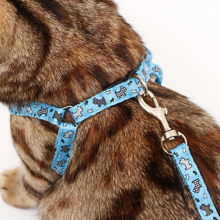 Комплект амуниции с мягкой шлейкой, поводок 120 х 1 см, ОШ 28-54 см, ОГ 36-60 см, серо-голубой