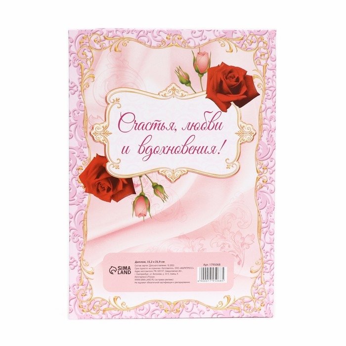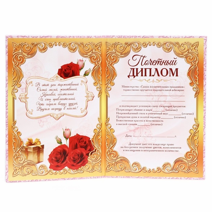 Диплом "Прекрасной юбилярши", 21,5 × 15,2 см