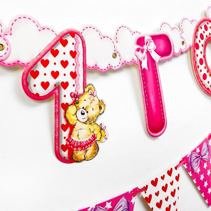 Гирлянда на ленте «Мне 1 год» станет достойным оформлением первого дня рождения малыша! Повесьте её на стену за ленту, и комната вмиг преобразится.