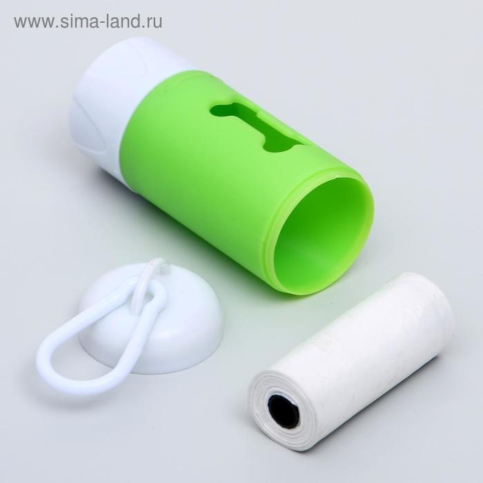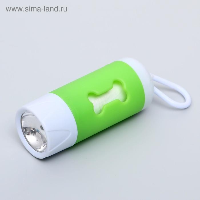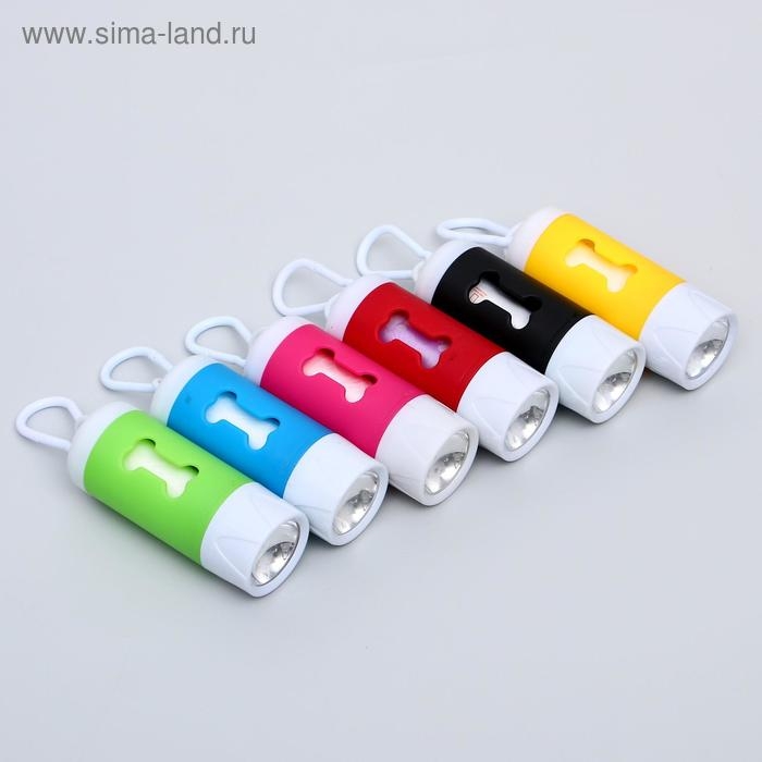 Контейнер с пакетами для уборки за собаками с фонариком (15 пакетов), 9,8х3,8х3,8 см, микс