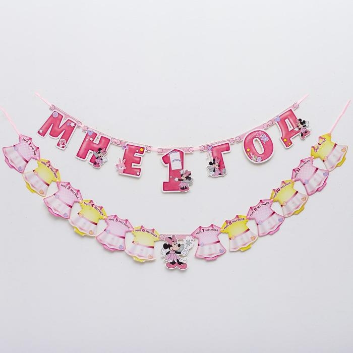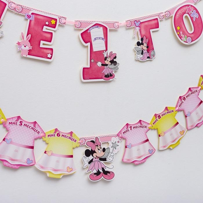 Гирлянда на ленте "Мне 1 год", с 12 карточками для фото, Минни Маус