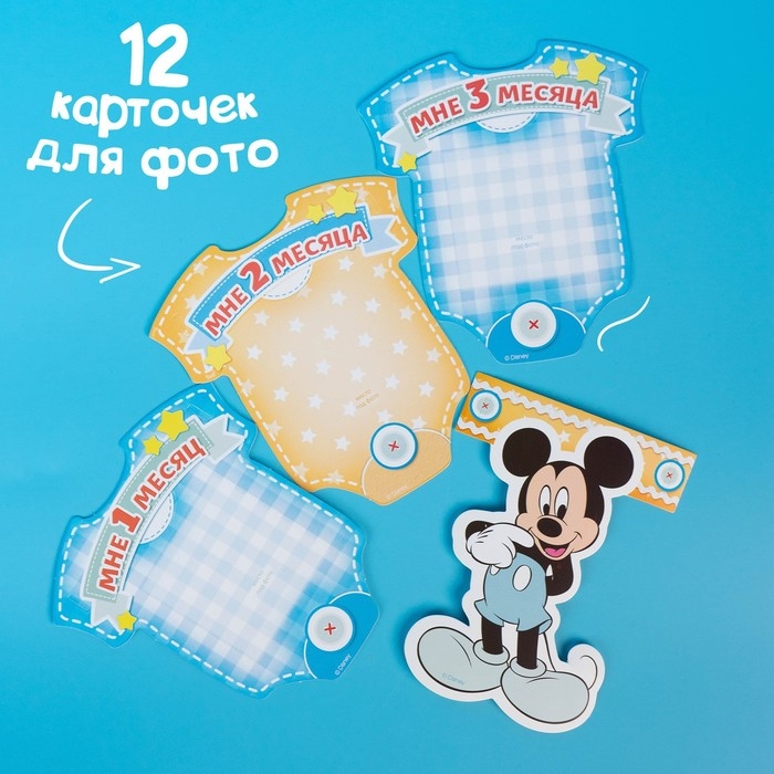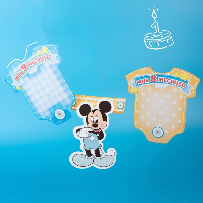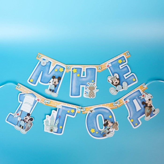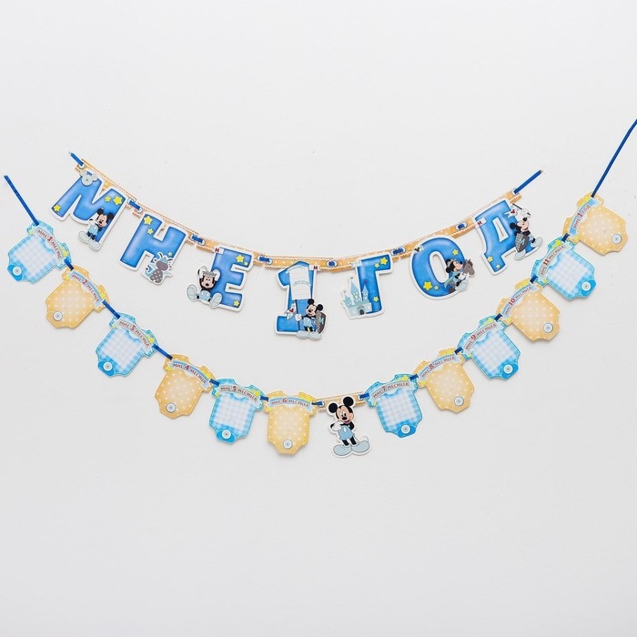 Гирлянда на ленте "Мне 1 год", с 12 карточками для фото, Микки Маус и друзья