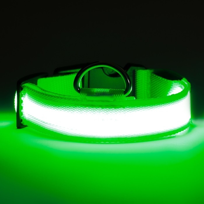 Ошейник с подсветкой размер L, ОШ 45-52 х 2,5 см, 3 режима свечения зелёный