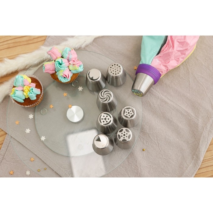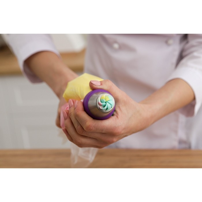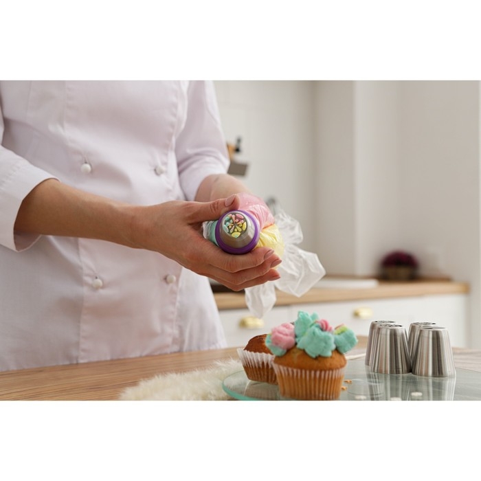 Насадки предназначены для нанесения на выпечку необычных украшений из крема. Пользоваться изделиями просто: достаточно присоединить его к универсальному кондитерскому мешку.
