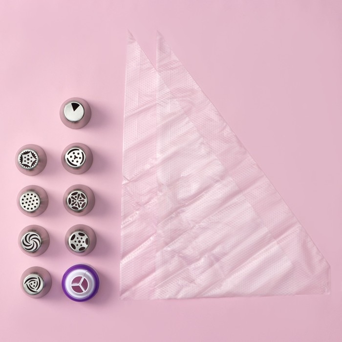 Набор кондитерский Доляна, 11 предметов: 10 насадок, мешок, цвет МИКС