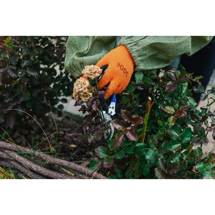 Изделия имеют тканевую основу и специальную PVC-пропитку: такое сочетание материалов делает их одновременно комфортными и износоустойчивыми. Яркая расцветка поможет легко и быстро найти пропажу среди грядок.