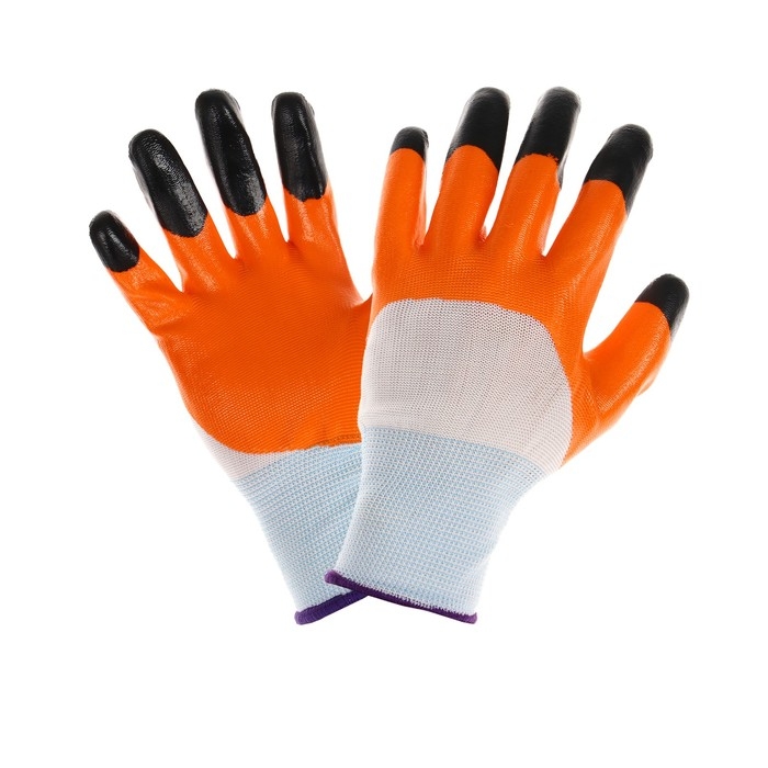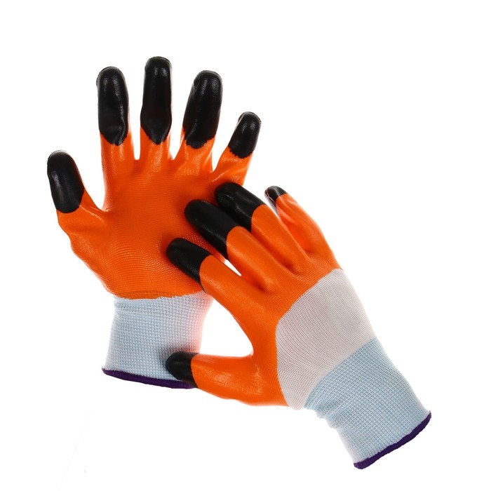 Перчатки садовые, нейлоновые, с нитриловым полуобливом, размер 10, оранжевые, Greengo