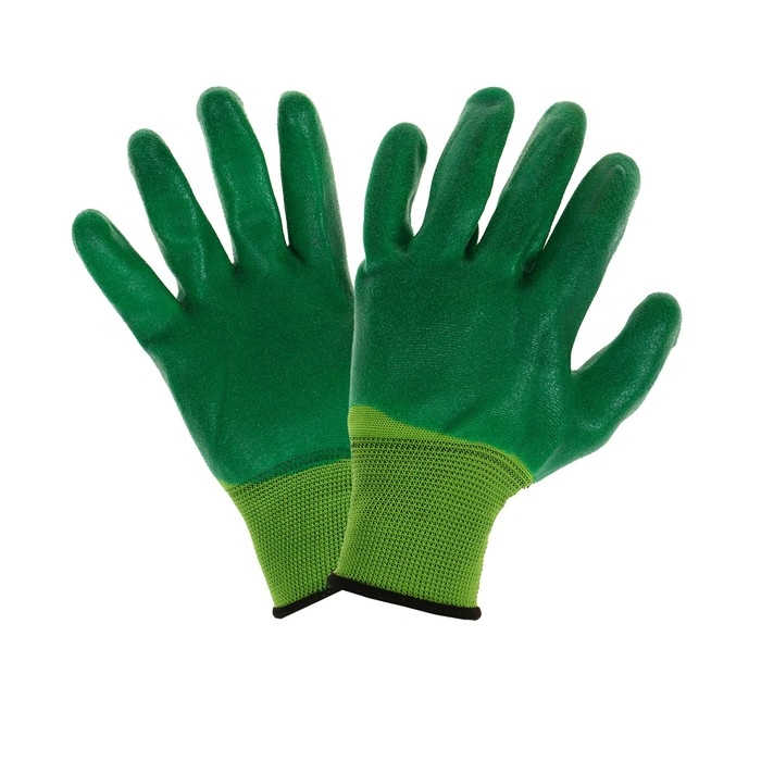 Перчатки садовые, нейлоновые, с двойным антивыскальзывающим нитриловым обливом, размер 10, цвет МИКС, Greengo