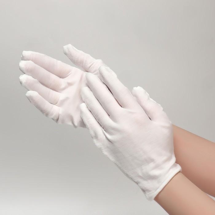 Перчатки хлопковые, размер M, пара, фасовка 12 шт, цвет белый