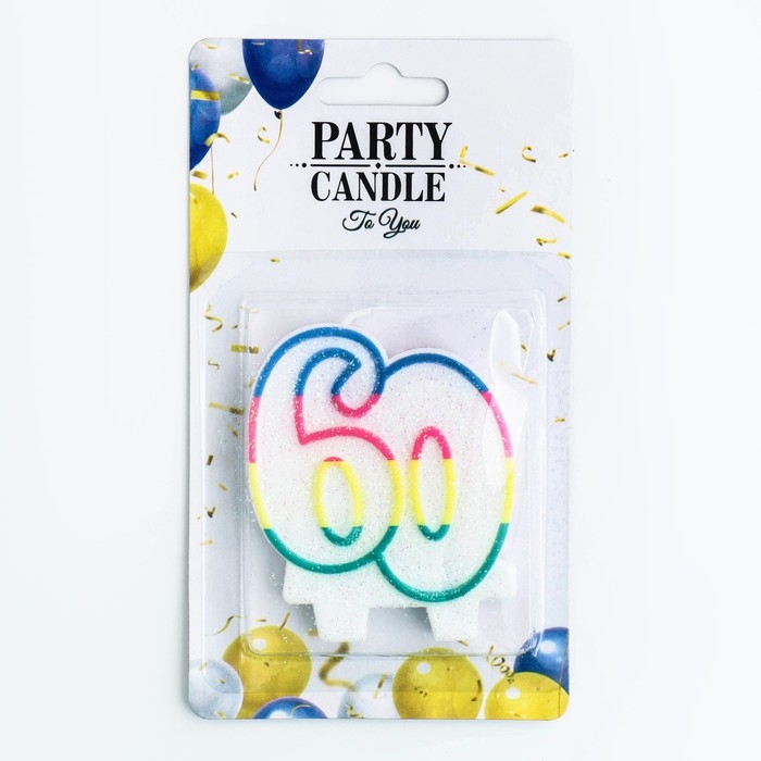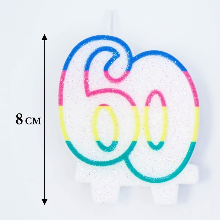 Свеча для торта «Юбилейный ГИГАНТ», цифра "60", ободок цветной, 7,5 см