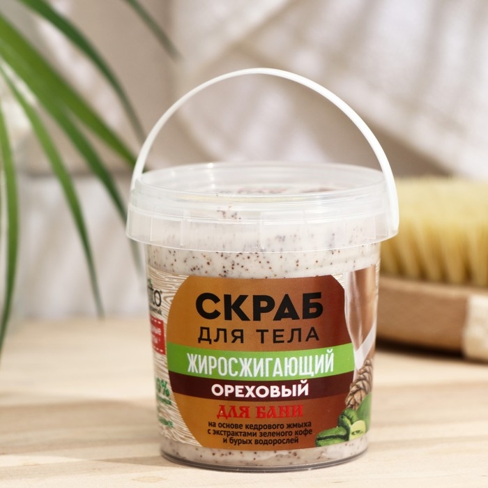 Скраб для тела ореховый "Народные рецепты" жиросжигающий, для бани, банка, 155 мл