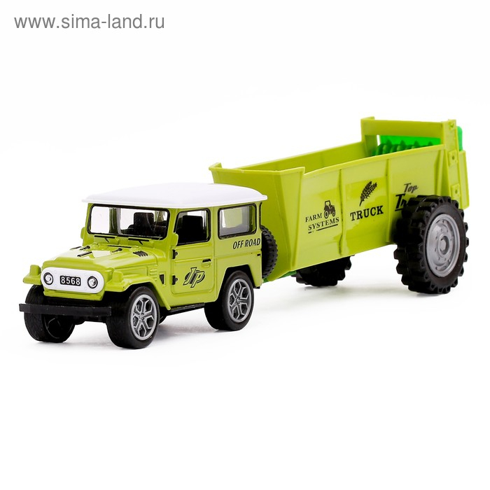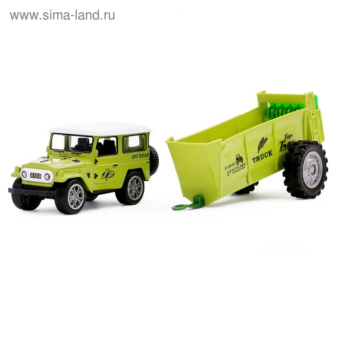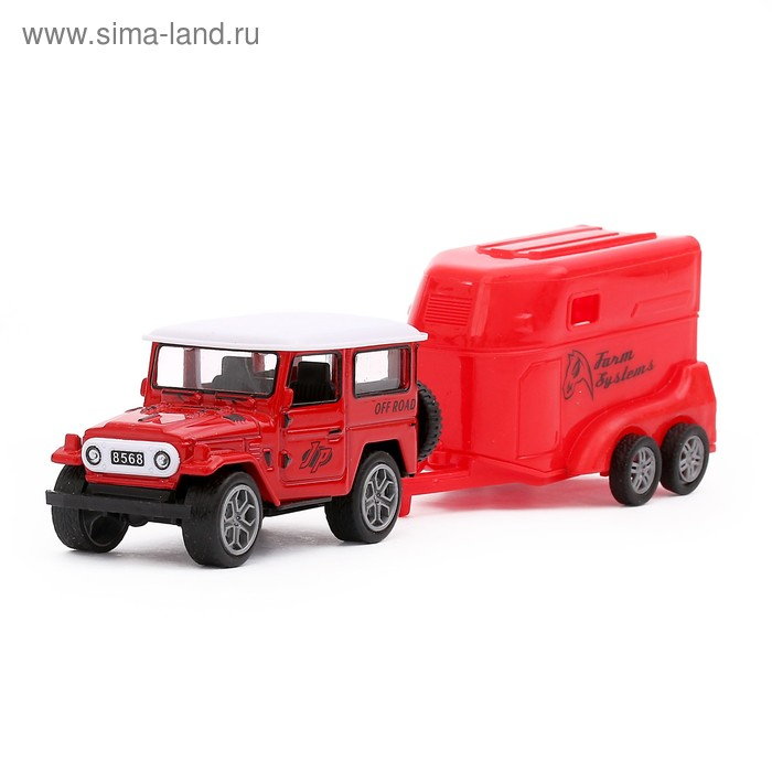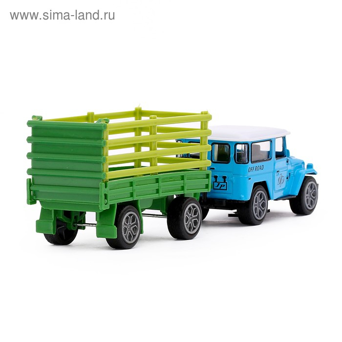 Машина металлическая «Джип», с прицепом, инерционная, МИКС