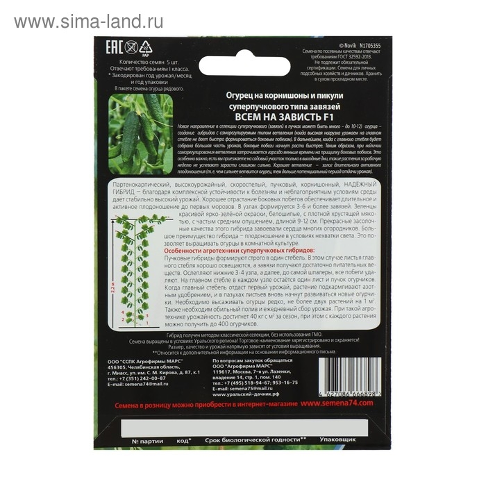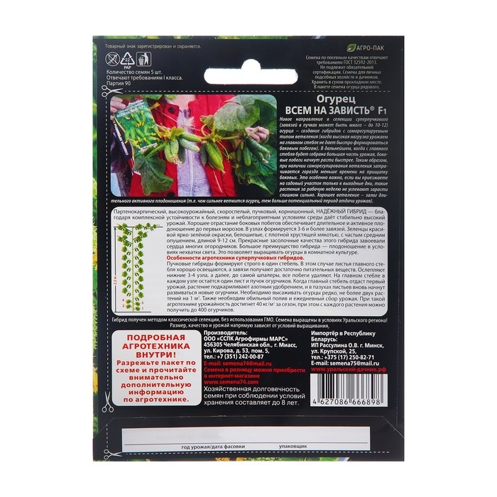 Семена огурца "Всем на Зависть", F1, 5 шт.