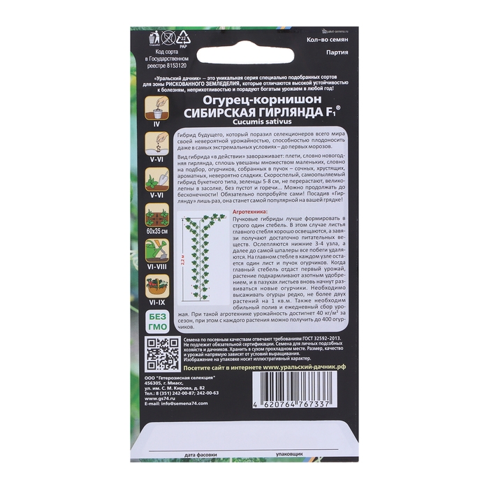 Семена Огурец "Сибирская Гирлянда" F1 скороспелый, партенокарпический, 5 шт