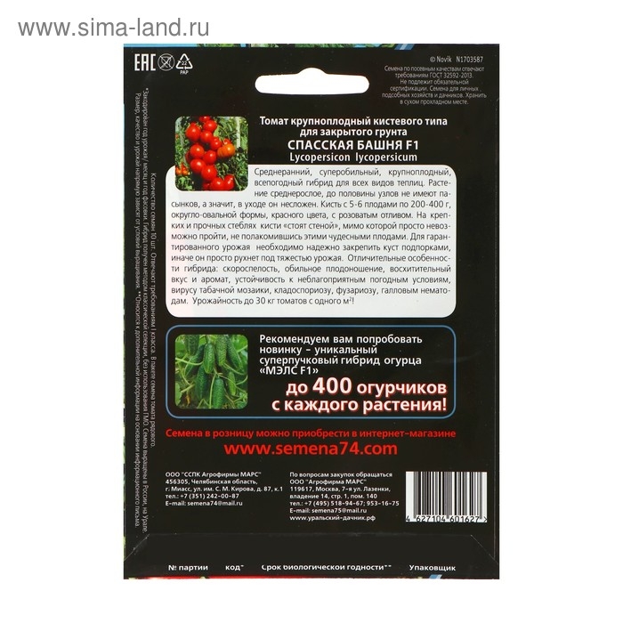 Семена Томат "Спасская Башня" F1 крупноплодный, среднеранний, всепогодный, 10 шт