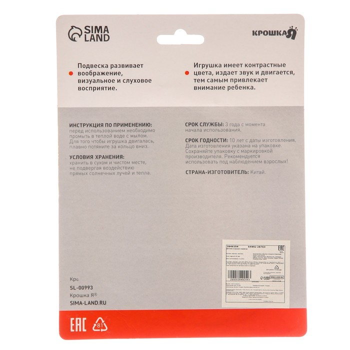 Подвеска музыкальная «Слоник», заводная, на кроватку, коляску, цвет МИКС, Крошка Я