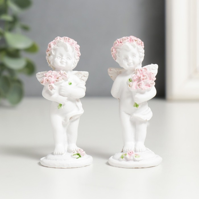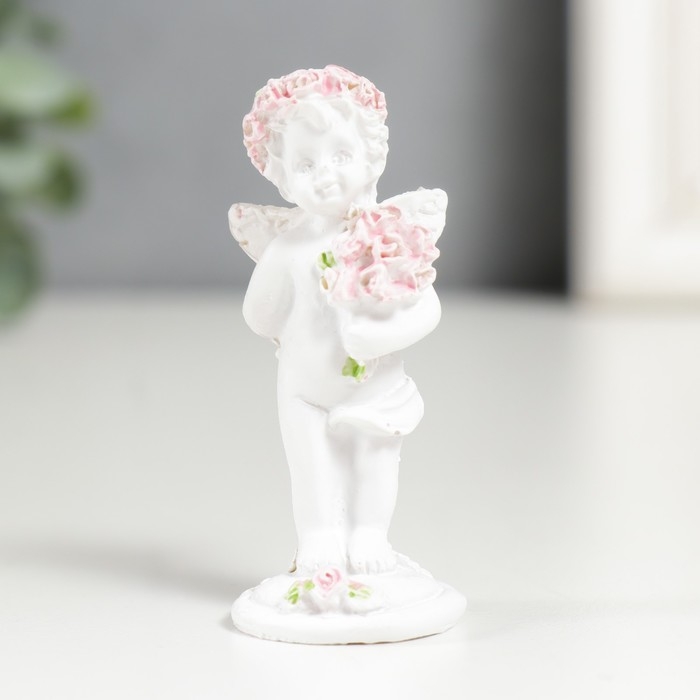 Фигурка полистоун "Ангел с букетом розовых роз" МИКС 6,5х2,5х2,5 см