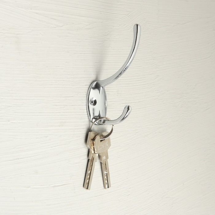Металлический двухрожковый крючок поможет вам организовать порядок в доме. Данная фурнитура предназначена для хранения одежды, аксессуаров и других вещей.