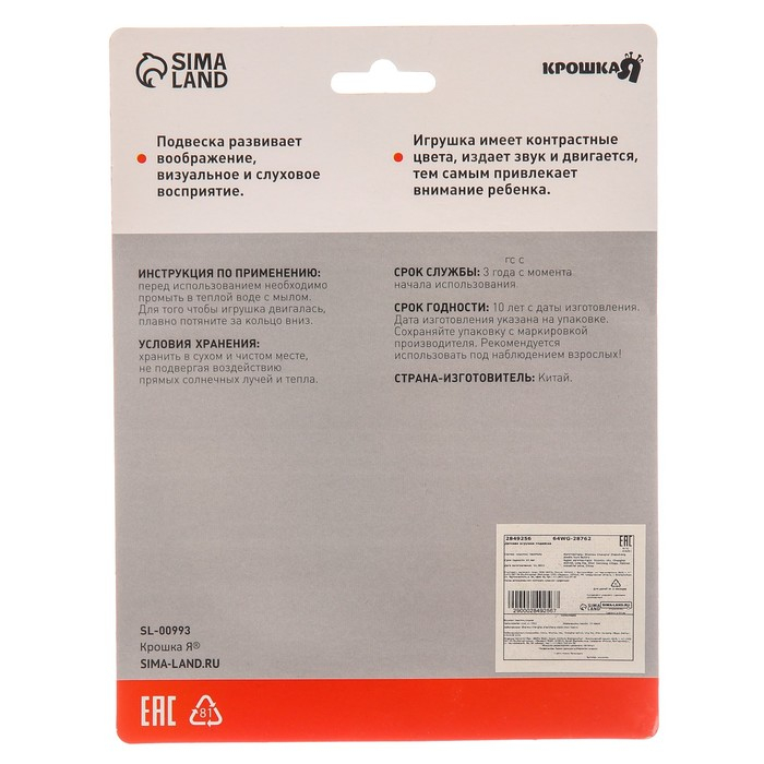 Подвеска музыкальная «Щенок», заводная, на кроватку, коляску, Крошка Я