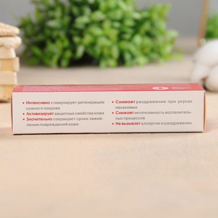 Натуральное эффективное заживления поверхностных повреждений кожи: ссадин, царапин, порезов, потертостей, ожогов (в том числе, солнечных), раздражений, расчесов (после укусов насекомых). Обладает высокой регенеративной способностью. Предупреждает присоединение вторичной инфекции и образование рубцов. Защищает кожу от агрессивного воздействия внешних факторов.
