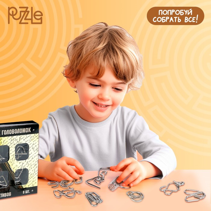Головоломка металлическая «Загадки детективов» набор 8 шт.