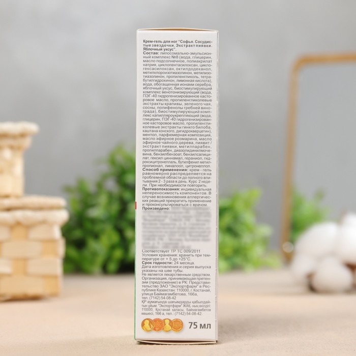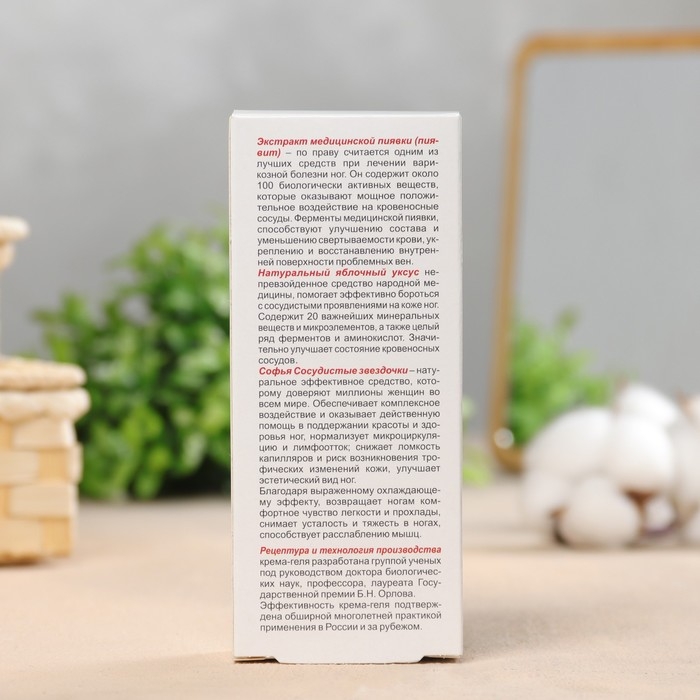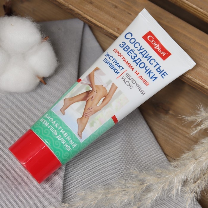 Крем-гель для ног от сосудистых звездочек с экстрактом пиявкии яблочного уксуса 75 мл