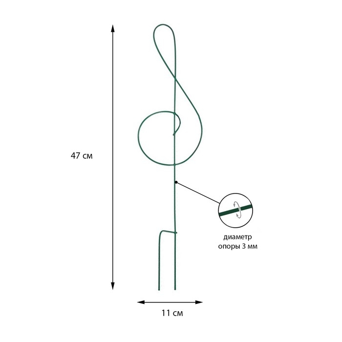 Шпалера, 47 × 11 × 0.3 см, металл, зелёная, «Скрипичный ключ»
