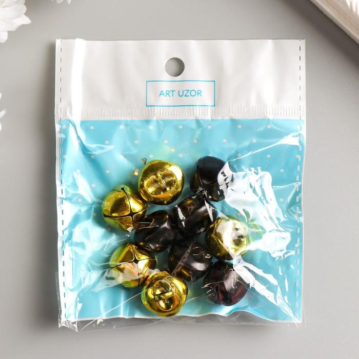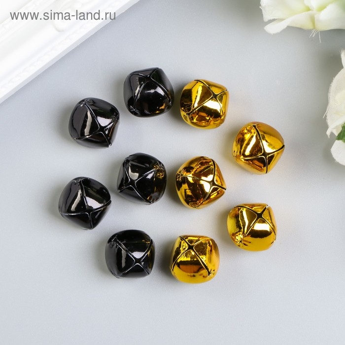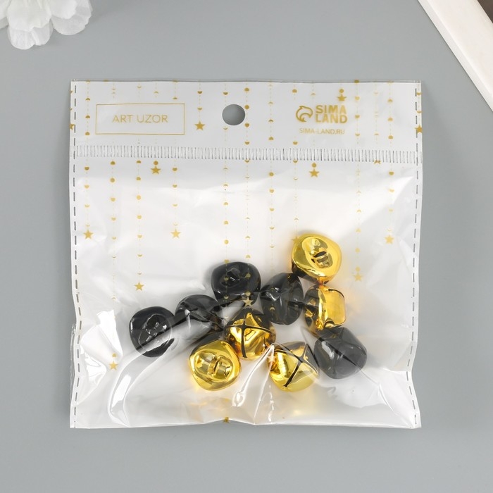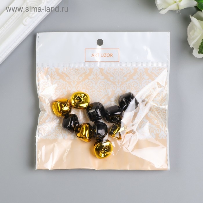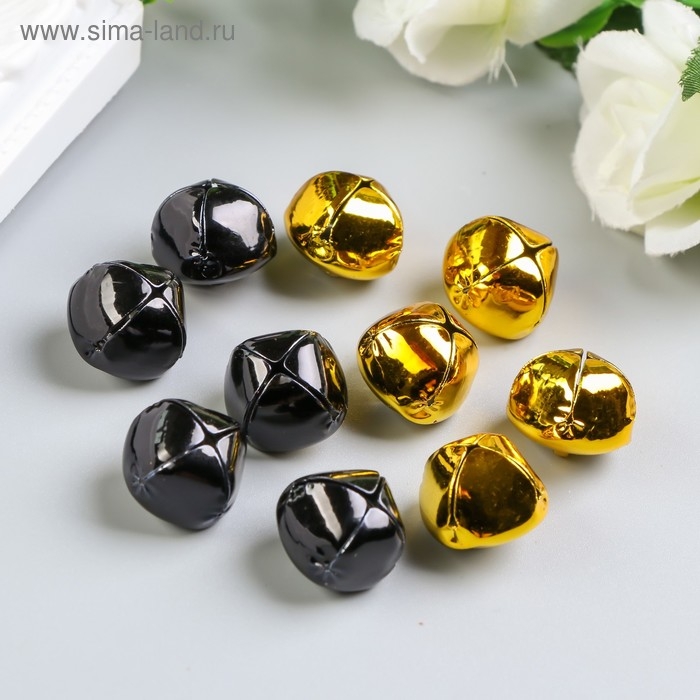 Набор декора для творчества "Колокольчики золотые и чёрные" d=1,8 см набор 10 шт