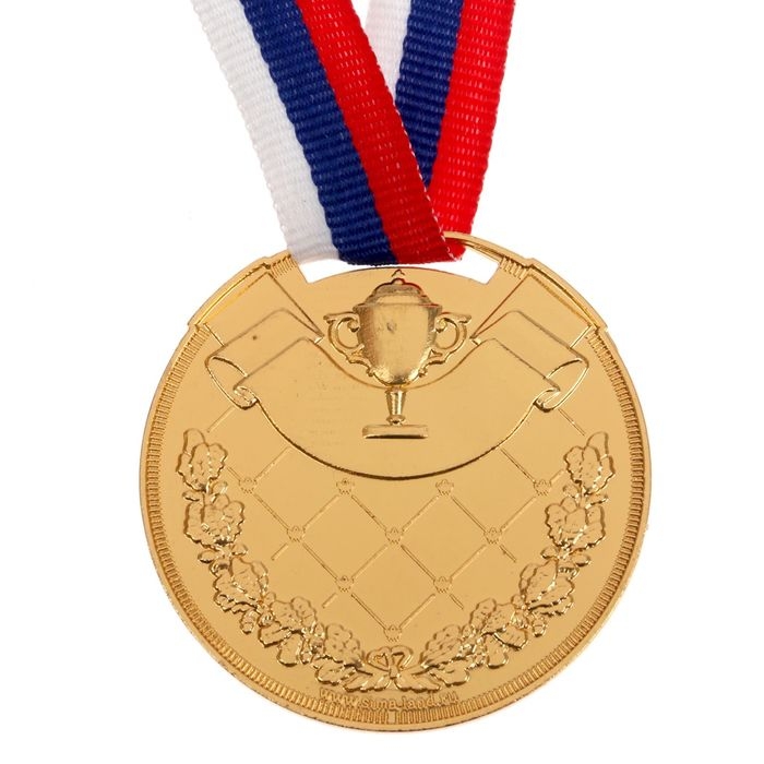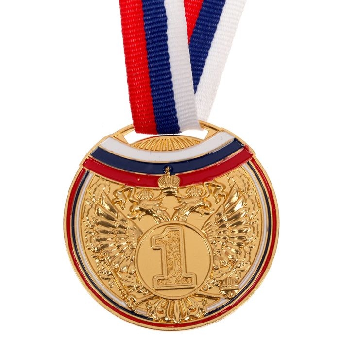 Медаль призовая 013, d= 5 см. 1 место, триколор. Цвет золото. С лентой