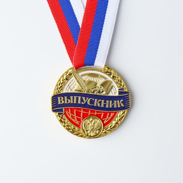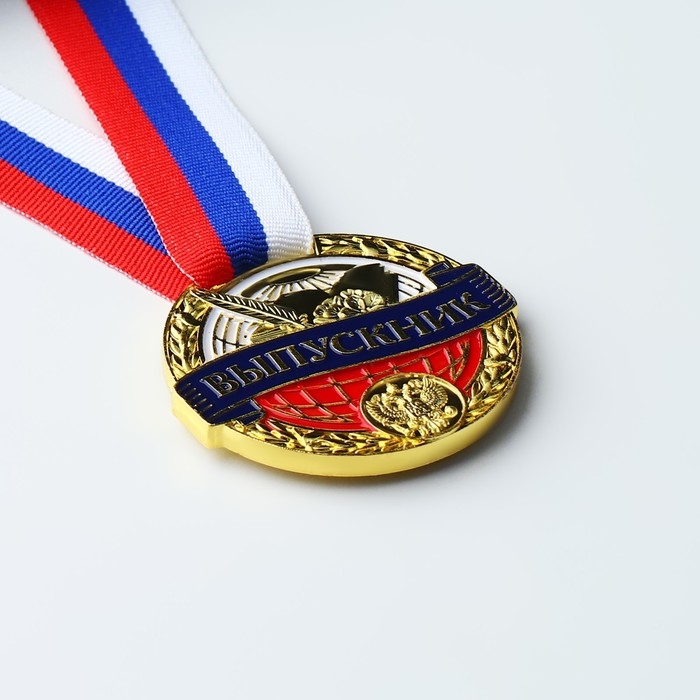 Медаль школьная на Выпускной «Выпускник», на ленте, золото, металл, d = 5 см