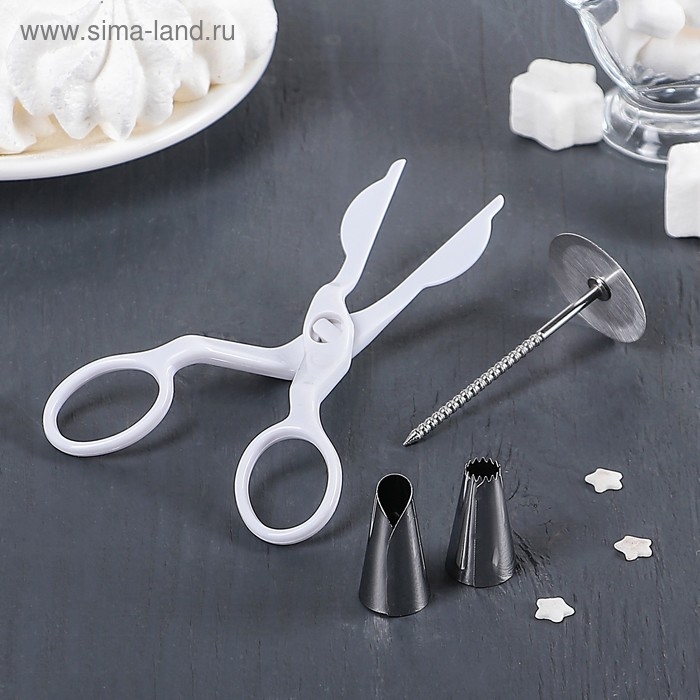 Набор кондитерский Доляна, 4 предмета, 2 насадки d=1,7 см, ножницы кондитерские для переноски украшений, гвоздь d=0,3/3,3 см