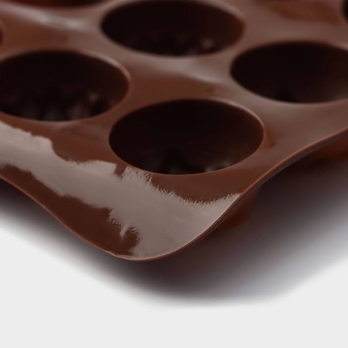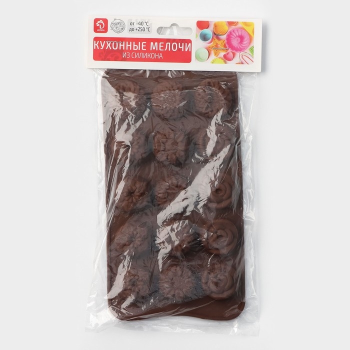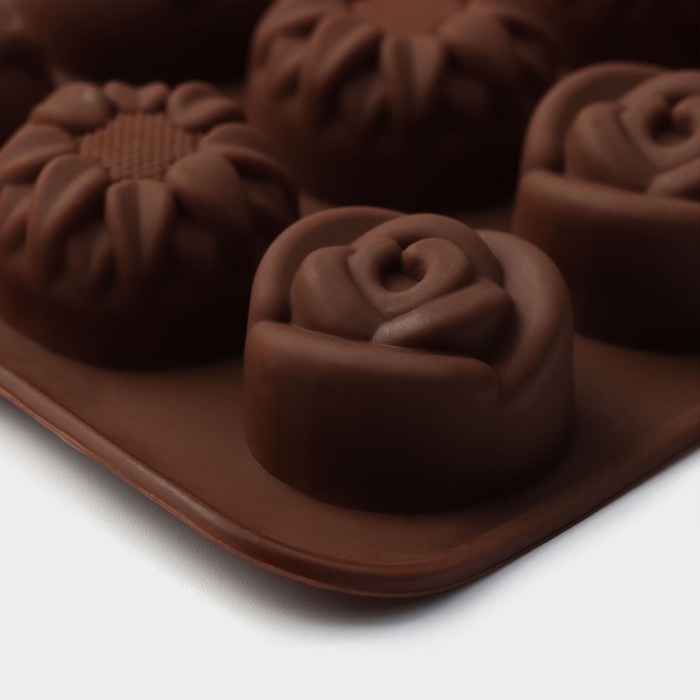 Форма для конфет и шоколада Доляна «Клумба цветов», силикон, 20,5×10,5×1,5 см, 15 ячеек, цвет коричневый