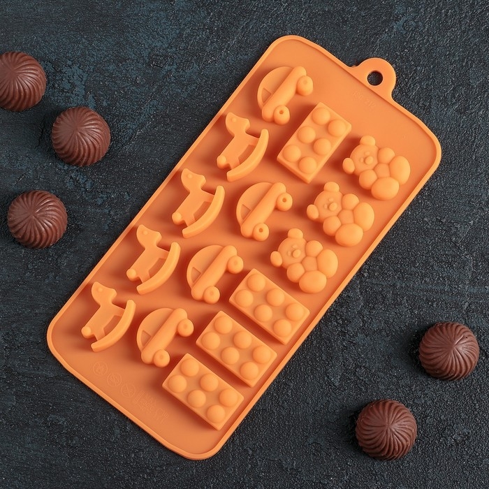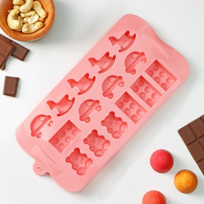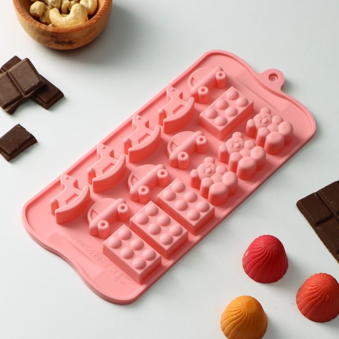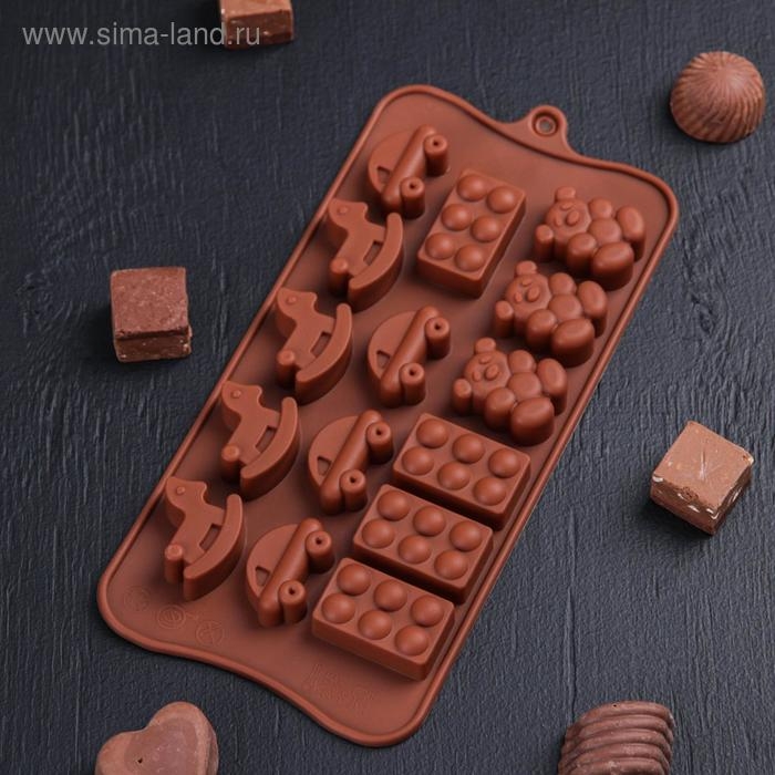 Форма для конфет и шоколада Доляна «Детские игрушки», силикон, 21×11 см, 15 ячеек (3,5×2 см), цвет МИКС