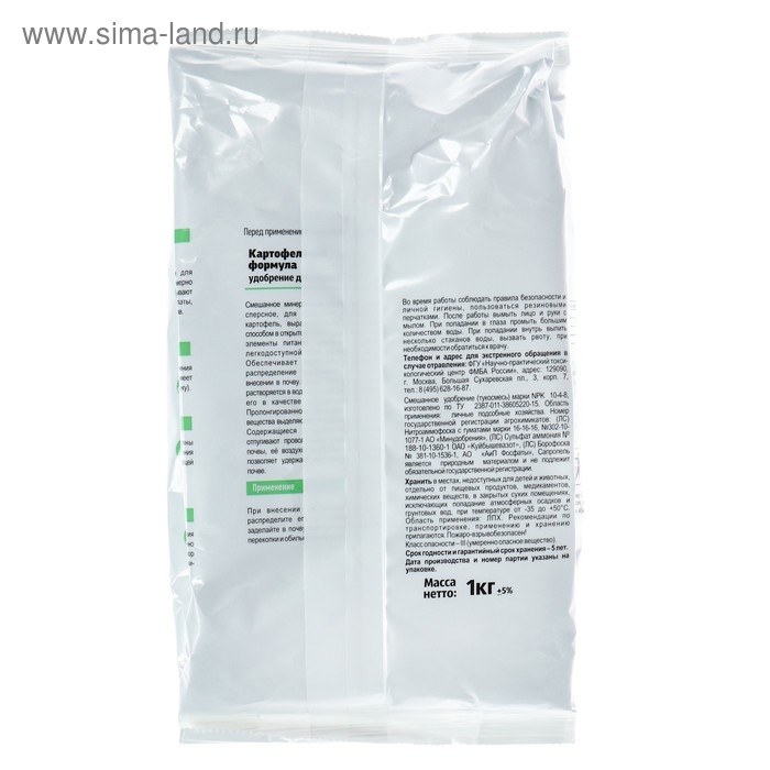 Комплексное органоминеральное удобрение способствует созреванию полноценных, здоровых клубней, улучшает вкусовые качества продукта.