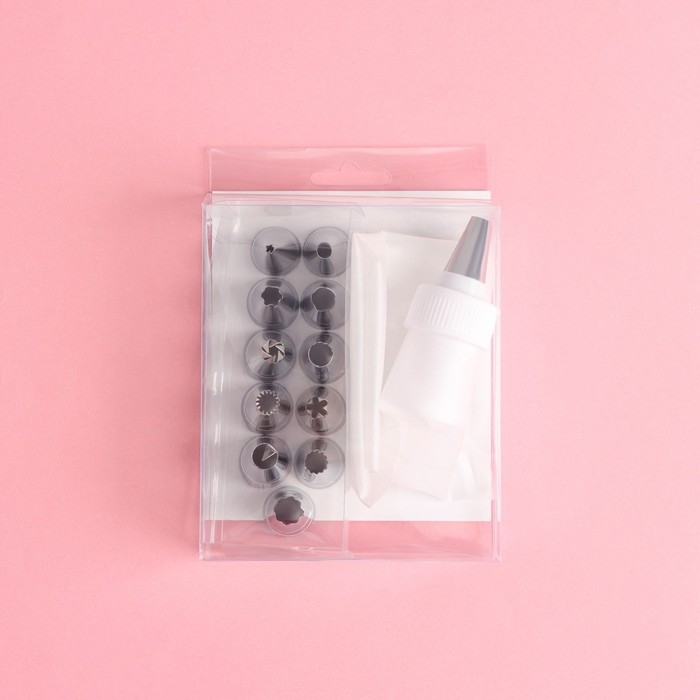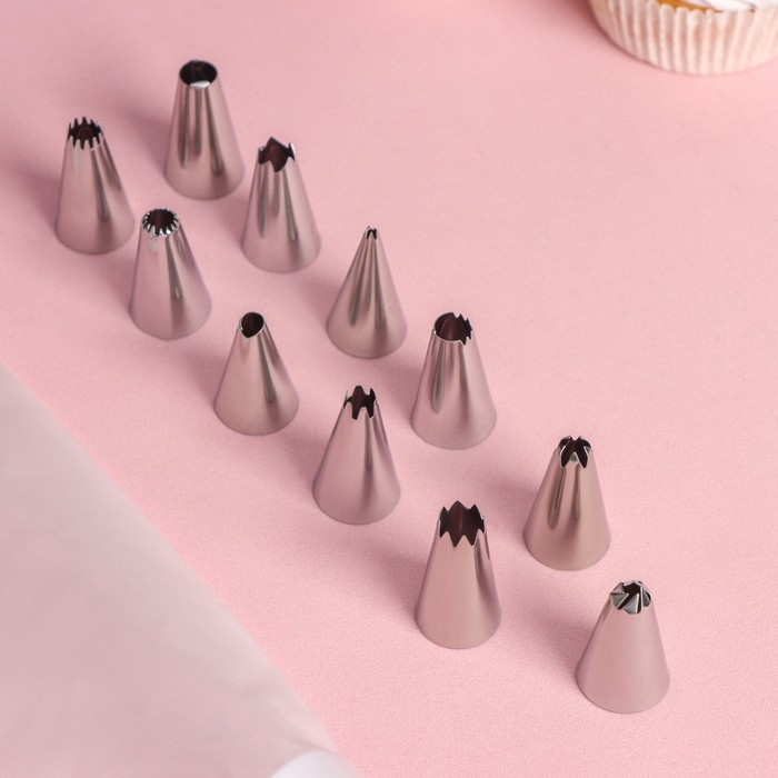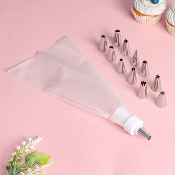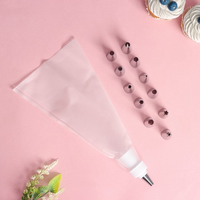 Набор кондитерский Доляна «Помощник», 13 предметов: 12 насадок d=1,8 см, мешок 23 см, насадки МИКС