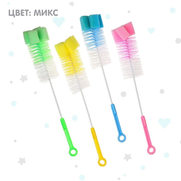 Ёршик для бутылочек, с губкой, цвета МИКС
