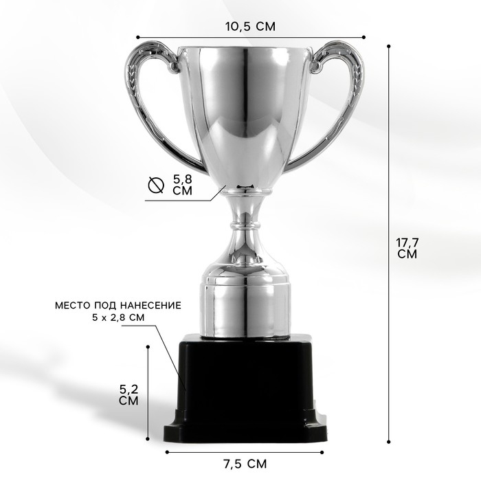 Кубок 113, наградная фигура, серебро, подставка пластик, 17,7 x 10,5 x 7,5 cм.