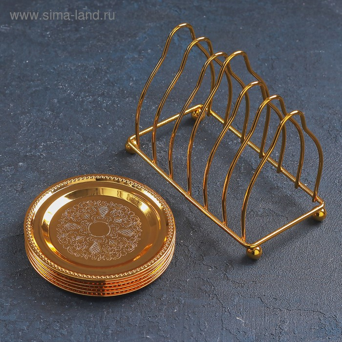 Набор блюдец с подставкой «Золото», d=10 см, 6 шт, цвет золотой