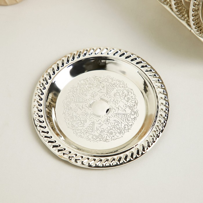 Набор блюдец «Серебро», 14×10×12 см, с подставкой, 6 шт, цвет серебряный