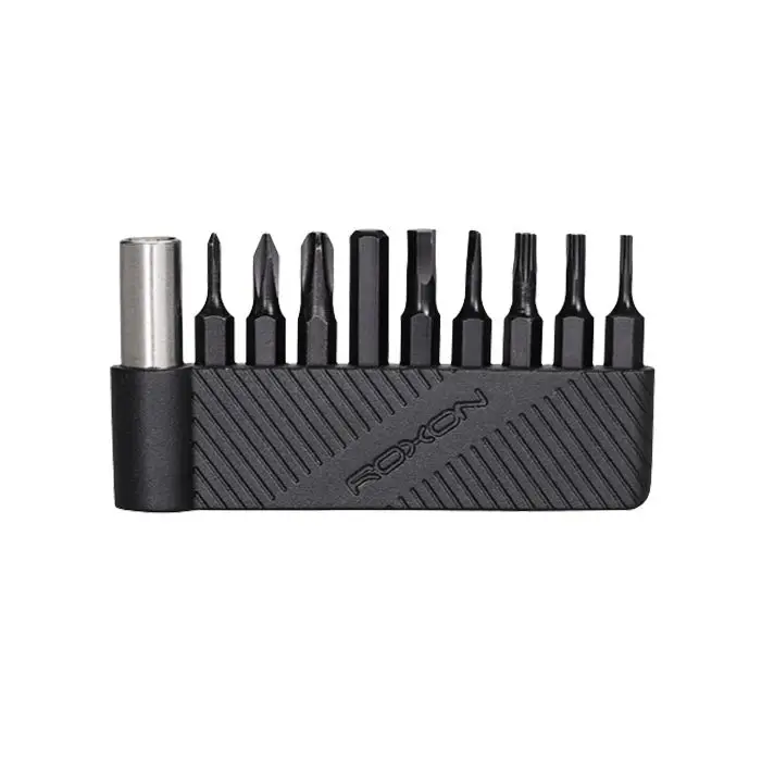 В комплекте нейлоновый чехол, набор из 10 съемных бит, сменные лезвие и фиксатор.