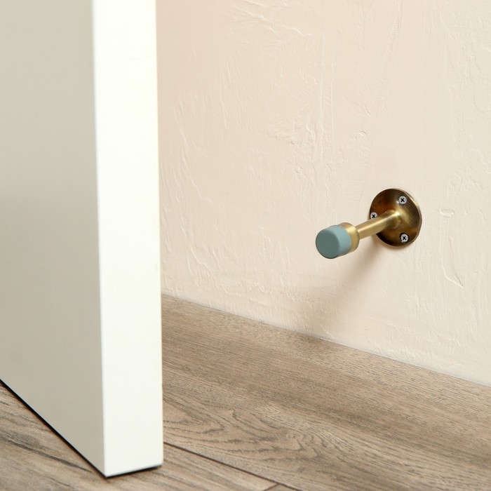Упор крепится на стену или дверь. Он уменьшает угол открытия двери и защищает стены и мебель от случайного удара.