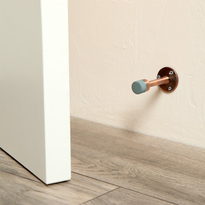 Упор крепится на стену или дверь. Он уменьшает угол открытия двери и защищает стены и мебель от случайного удара.