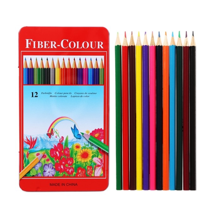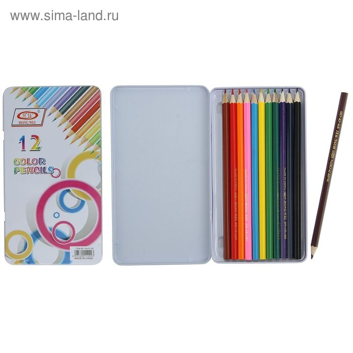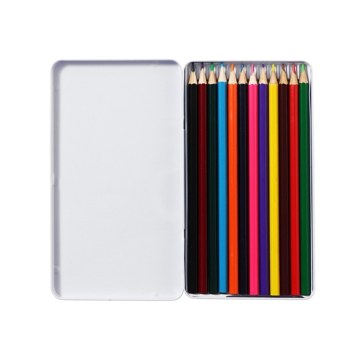 Карандаши цветные, в металлическом пенале, 12 цветов, заточенные