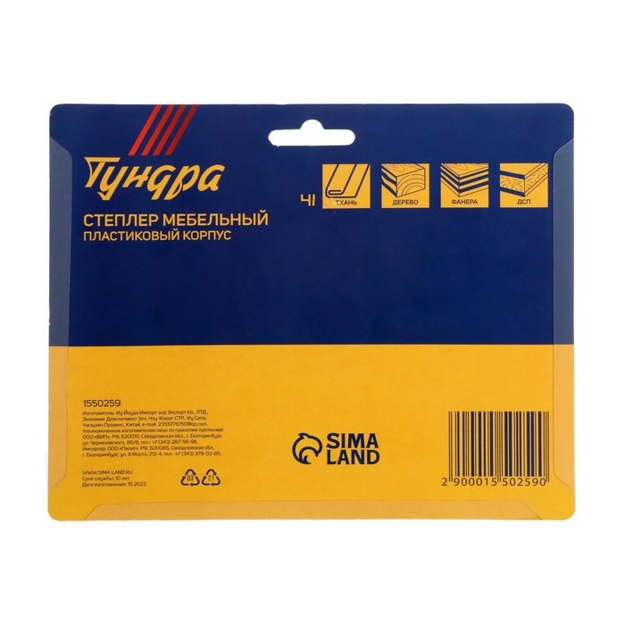 Степлер мебельный ТУНДРА, пластиковый корпус, тип скоб 53, 4 - 8 мм