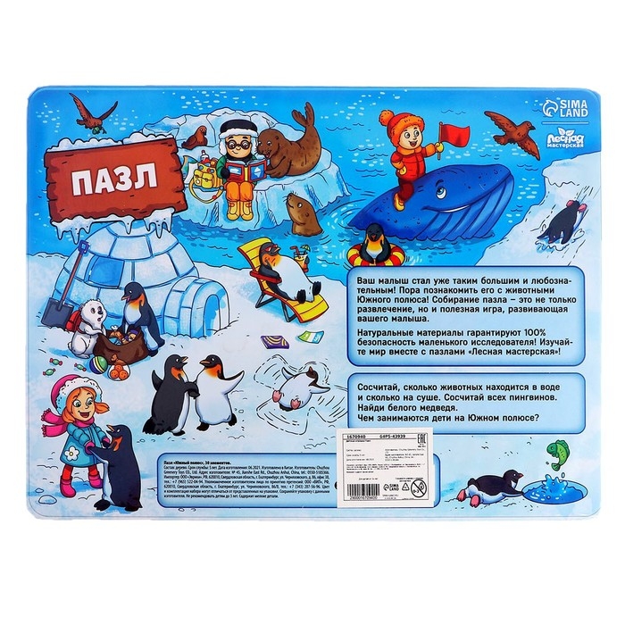 Пазл «Южный полюс» — идеальный подарок для ребёнка на Новый год! Также вы можете приобрести несколько наборов в качестве подарков для детей на новогодний утренник в детском саду.